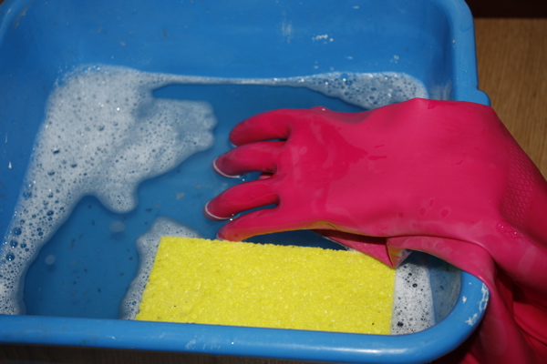 To make my fridge spotless, I used half a teaspoon of Dr. Bronner's in a bucket of hot water and my reused seventh generation spray bottle with 1 teaspoon of Dr.Bronner's diluted in water. I used baking soda on the spills that needed a little grit.